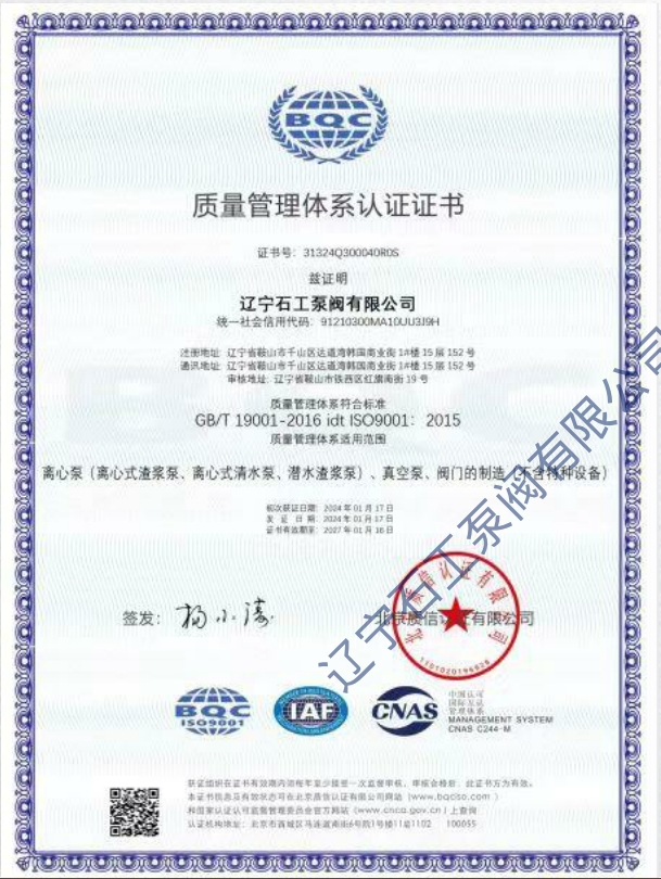 遼寧石工泵閥 有限公司 致力于研究、設計、生產(chǎn)及銷售各種工業(yè)水泵。公司秉承“質(zhì)量為主,客戶至上”的原則,為客戶提供渣漿泵、壓濾機入料泵、液下泵、清水泵、多級泵、雙吸泵、管道泵、化工泵、氟塑料泵、潛污泵、深井泵、潛水渣漿泵、泡沫泵、沙礫泵等產(chǎn)品。公司有多年的生產(chǎn)經(jīng)驗,良好的管理體系和質(zhì)量保證體系,我公司擁有雄厚的生產(chǎn)技術(shù)力量,完善的生產(chǎn)保障、質(zhì)量保證監(jiān)督體系和專業(yè)型精神隊伍。 產(chǎn)品主要為煤炭、電力...